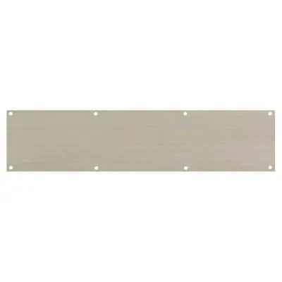 Atlantic Kick Plate Radius Corner Pre drilled with screws 800mm x 150mm – Satin Stainless Steel. Door kick plates are a sheet of material attached to the bottom of your door to protect it from damage. Satin Stainless Steel is a grey colour with very slight golden undertones. It has visible brush marks in the surface of the finish. For accompanying products, we recommend using Satin Chrome or Satin Nickel.