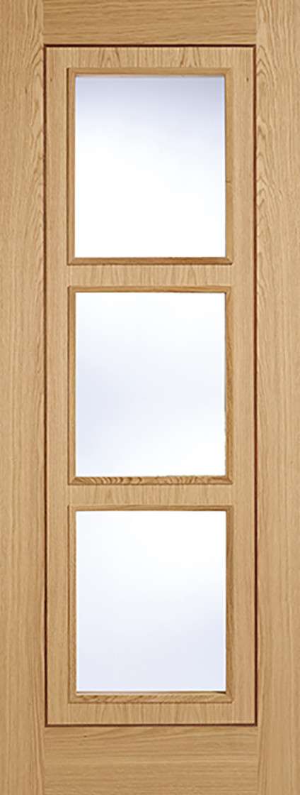 The Inlay 3L door design features a grooved design with three centre clear glazed panels and raised moulding on both sides. NB: This door has a Walnut Inlay.