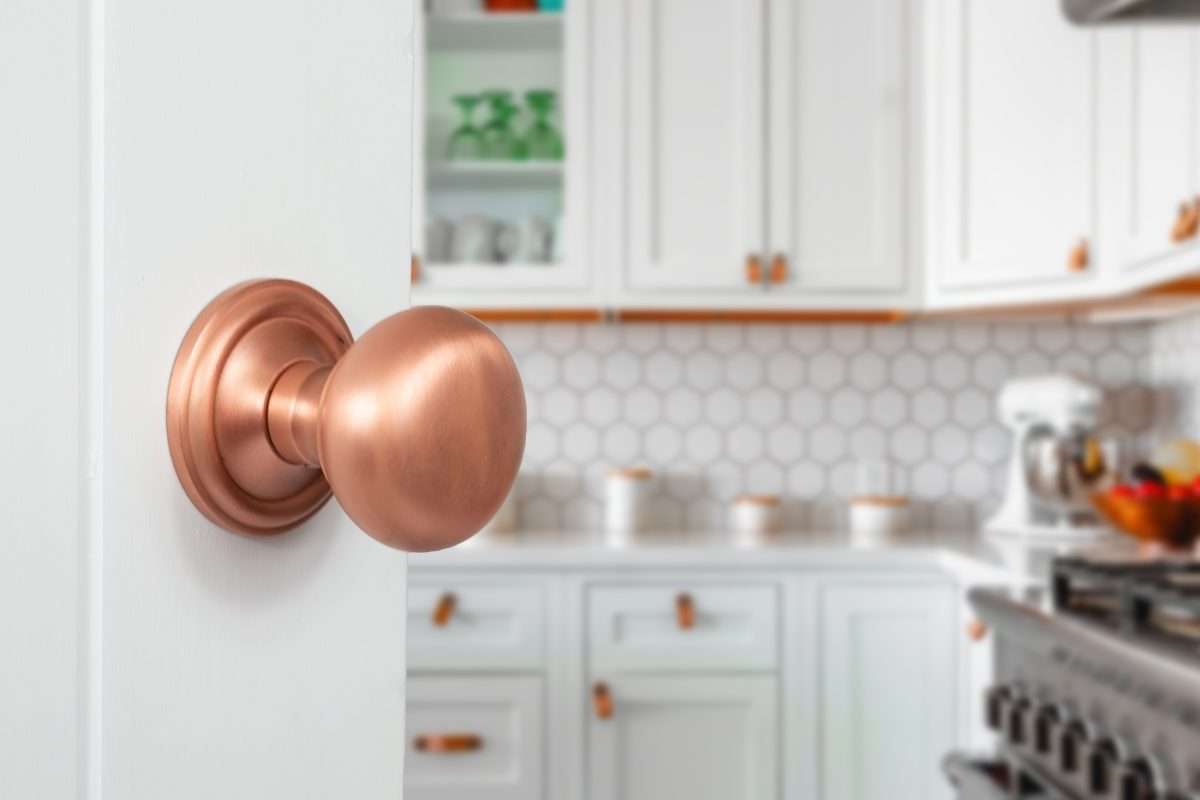 Old English Harrogate Solid Brass Mushroom Mortice Knob on Concealed Fix Rose – Urban Satin Copper