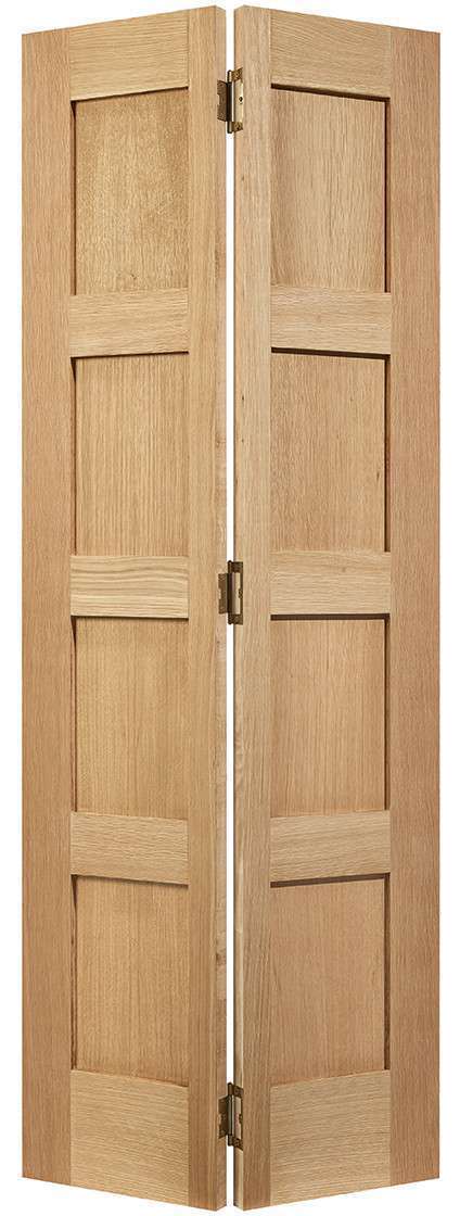 This tasteful door includes four pronounced unfinished Oak panels and a convenient bi-folding design. Please note 78 height includes track. Supplied with track and hinges “
