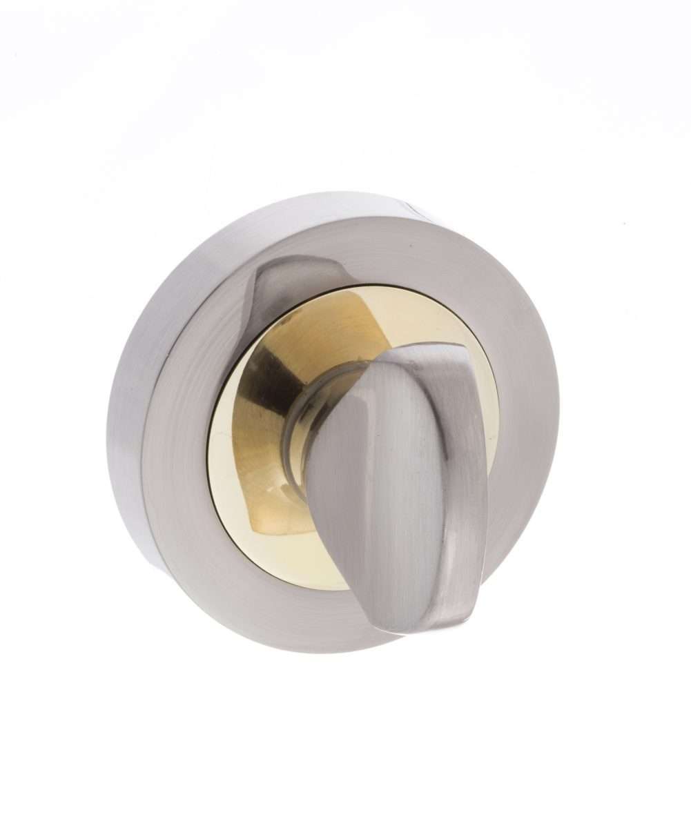 Finished in an eye-catching combination of brushed silver Satin Nickel and golden Polished Brass. For accompanying products, we recommend using either Satin Nickel or Polished Brass.