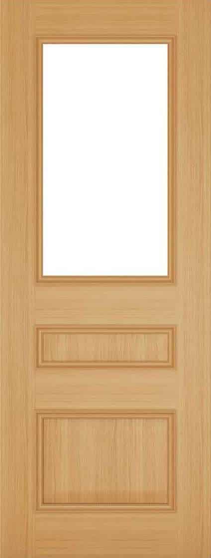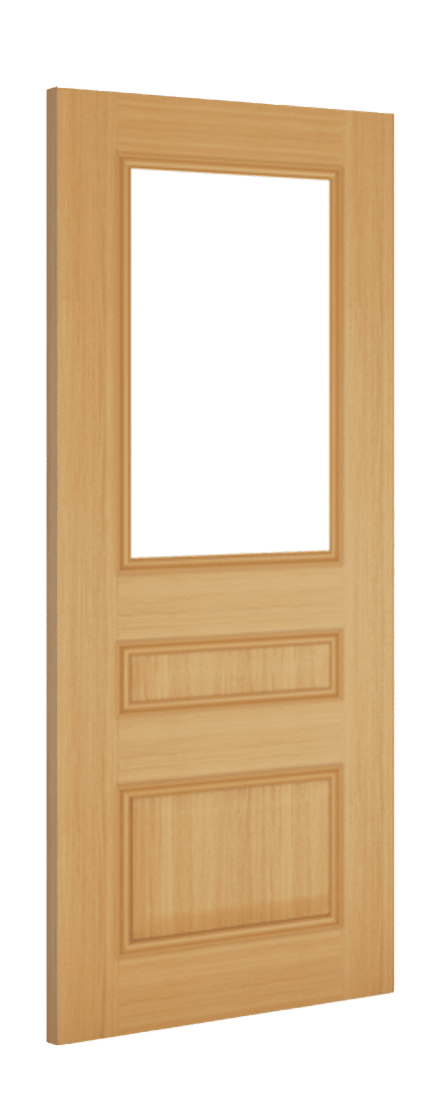 Windsor Oak Glazed Internal doors are supplied with Clear Bevelled glass as standard. These Prefinished Oak Glazed doors have 2 flat panels, surrounded by ornate beading, and with a top panel of toughened glass for that extra peace of mind. These solid Core Oak Internal Doors have a heavyweight feel, and are surrounded with solid 18mm lippings all round to allow professional joiners to trim up to 32mm off width and height. Beautifully crafted, in Deanta’s modern Door factory, these Glazed Oak Internal doors are supplied in a clear satin lacquer, so they are ready to hang when they arrive at your door.